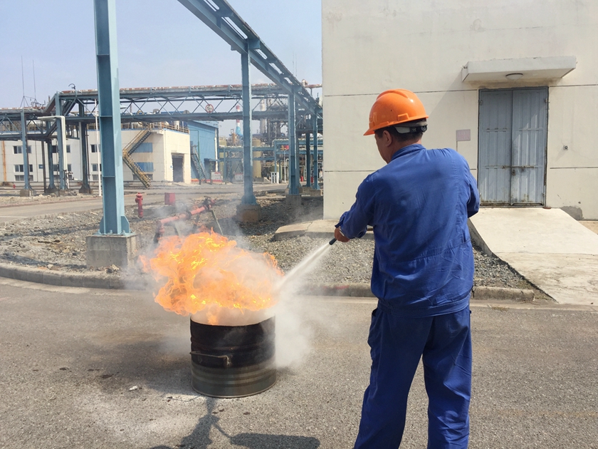 9时30分,办公大楼火灾事故应急演练正式开始。现场用油桶加入易燃物后点燃着火,被现场员工发现后,在确保自身安全的前提下,第一时间运用着火点周边的消防器材进行灭火,同时通知办公室负责人进行人员疏散。十分钟后,明火被扑灭。在演练中,灭火人员熟练使用消防器材,控制火势蔓延,使得整个灭火过程快速有效。