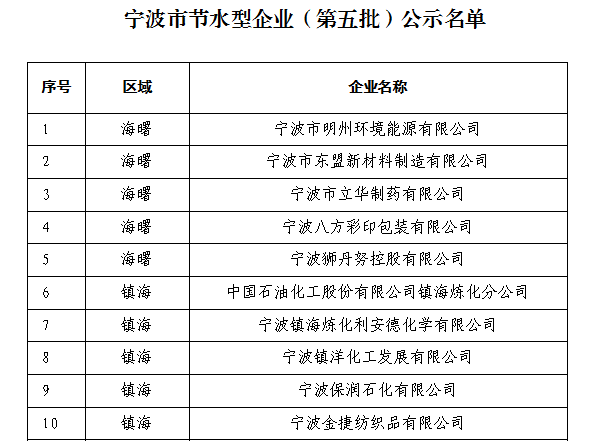 近日,经区经信部门牵头组织专家评审,市级有关单位复核,宁波市第五批宁波市节水型企业名单出炉,公司榜上有名。