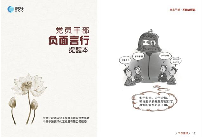 近日,公司编印《党员干部负面言行提醒本》口袋书,以生动的漫画形式提醒公司全体党员尤其是党员干部,说合适的话,做合适的事。